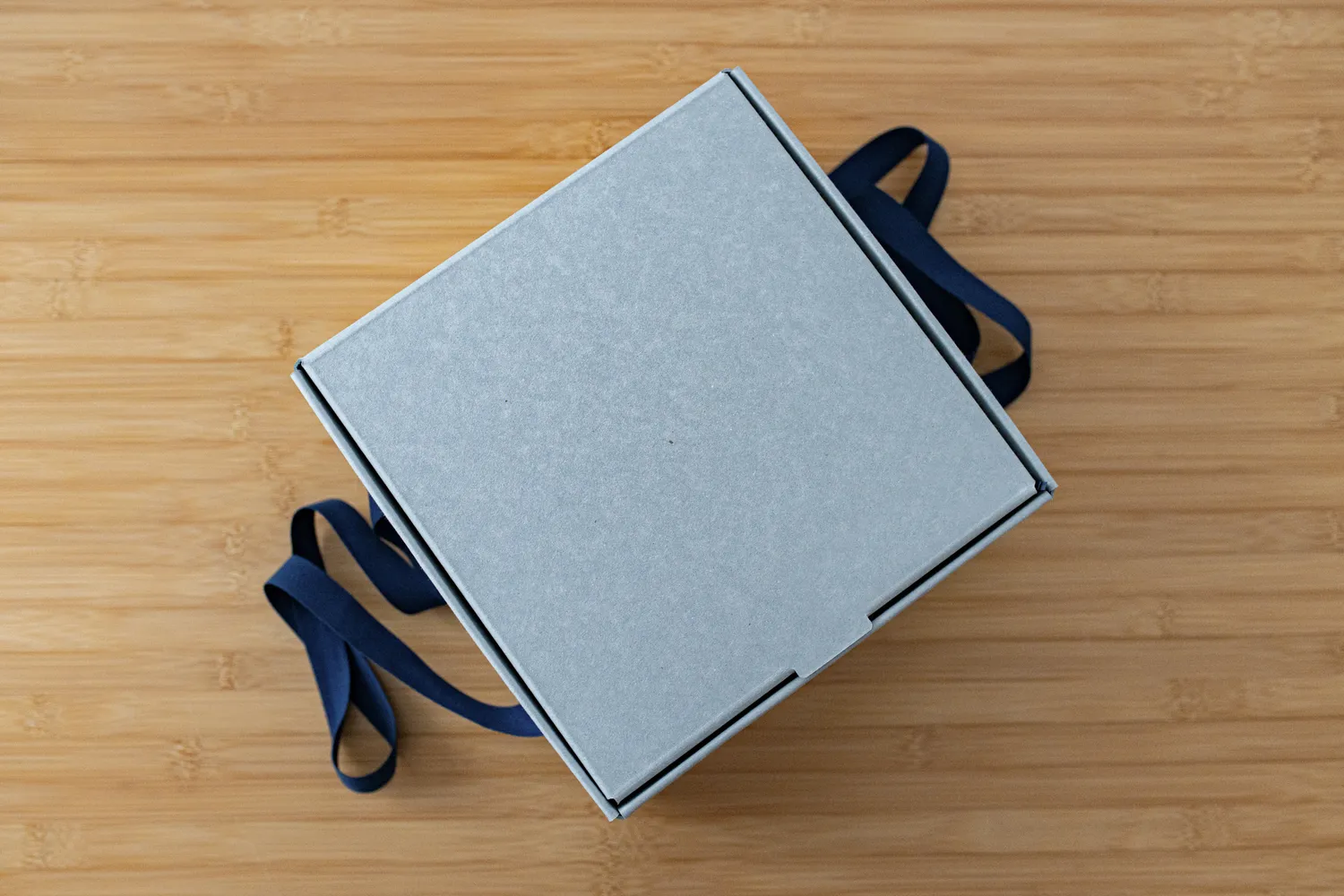 Upominek zapakowaliśmy w pudełko prezentowe wykonane z szarej tektury barwionej w masie, wykonanej z makulatury.